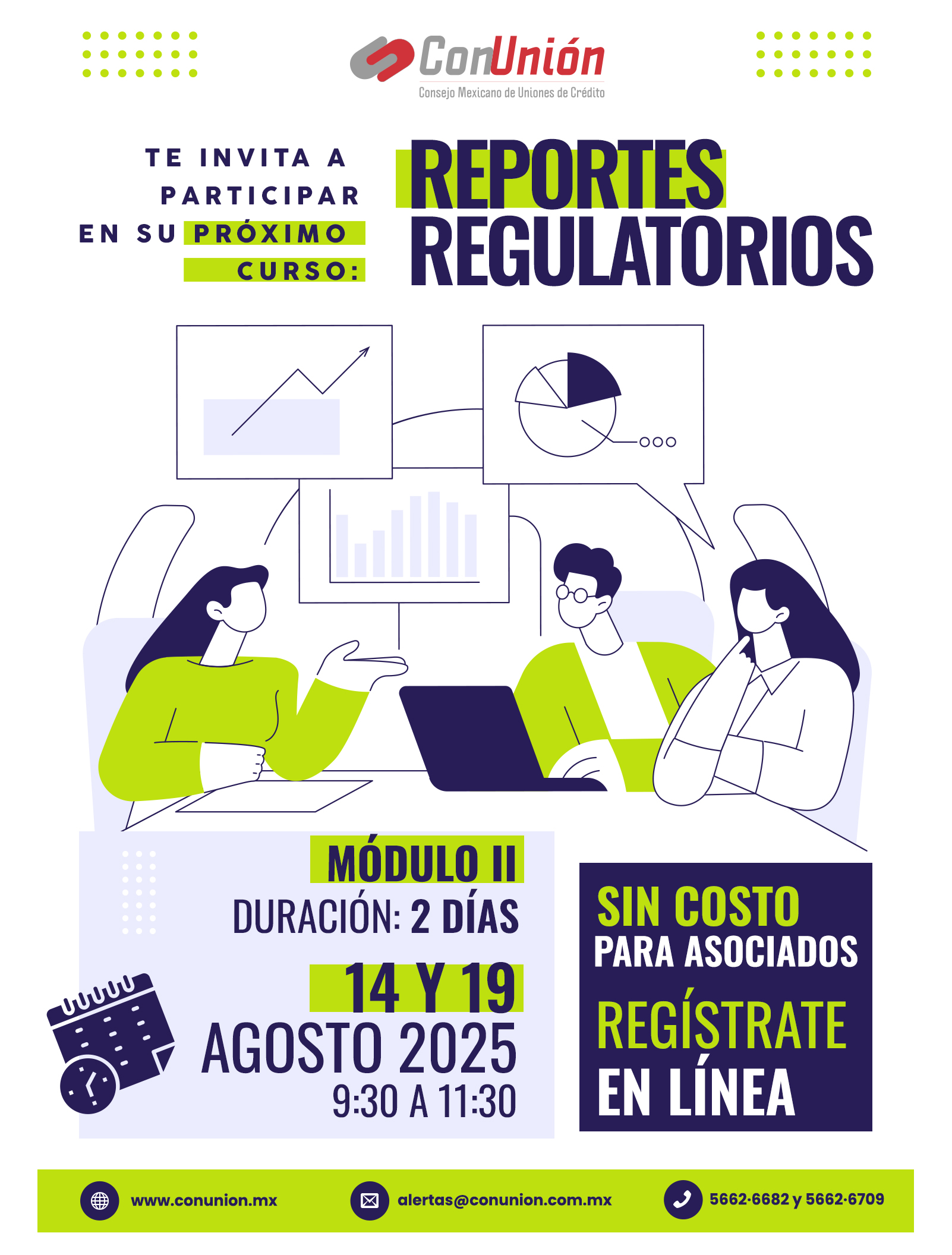 En ConUnión, estamos comprometidos con el crecimiento profesional de los funcionarios de las Uniones de Crédito. Este 2025, hemos diseñado un innovador programa de cursos y webinars enfocados en temas de vanguardia, con contenidos actualizados y un aprendizaje de alto nivel que impulsa su desarrollo y fortalece sus habilidades.